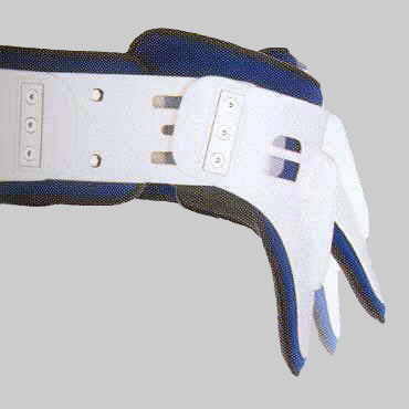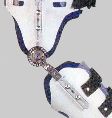 Hüftgelenk- und Oberschenkelschiene zur Bewegungsführung und Stabilisierung. Modell Coxa Stabil der Otto Bock Healthcare GmbH für die postoperative Behandlung.