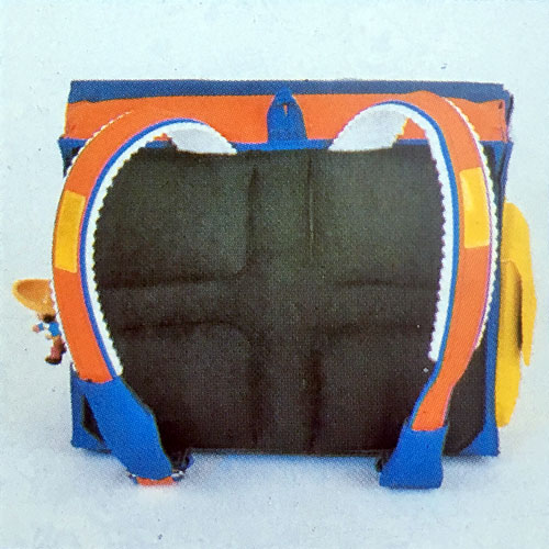 Deshalb haben wir unter Mitarbeit des Orthopäden Dr. Dieter Göbel eine Rückenform nach orthopädischen und physiologischen Grundsätzen entwickelt. Sie entlastet die sehr empfindliche Wirbelsäule der Kinder und beugt somit Haltungsschäden vor. Die spezielle Polsterung sorgt für Belüftung des Rückens und verhindert erkältungsgefährliche Schweißbildung.